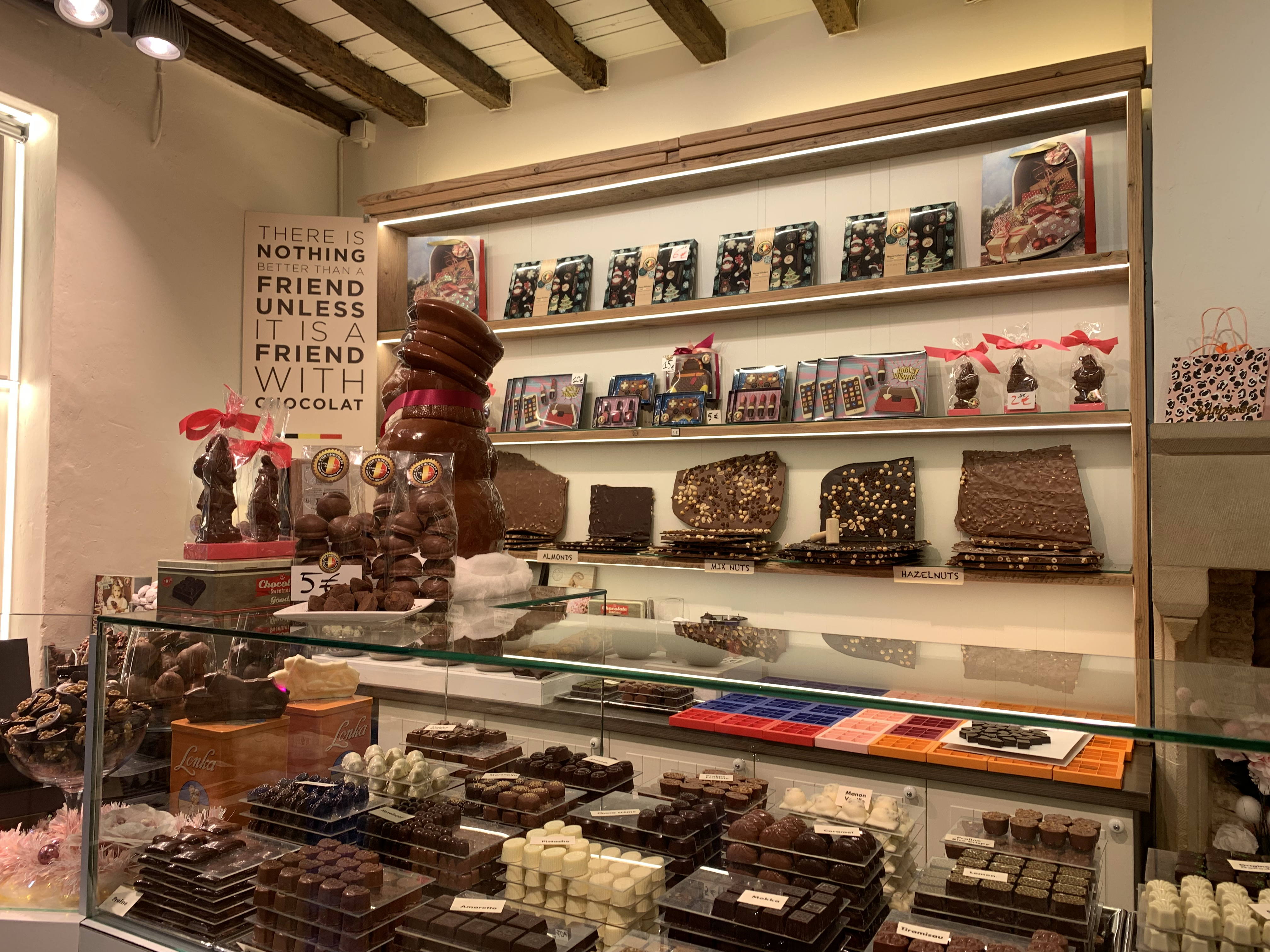 Of course, while in Belgium, I had to buy chocolate, so I picked up a lovely mixed assortment at Pur Chocolate. We sampled the chocolate truffles, and they were to die for!